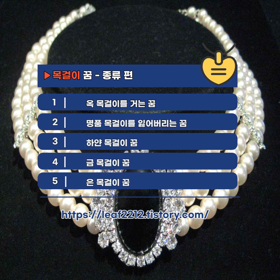 목걸이 꿈을 꾸더라도, 목걸이의 종류는 어떠했는지에 따라 해몽이 달라질 수 있습니다. 다음으로, 목걸이 꿈 - 종류 편에 대해 알아보도록 하겠습니다.
