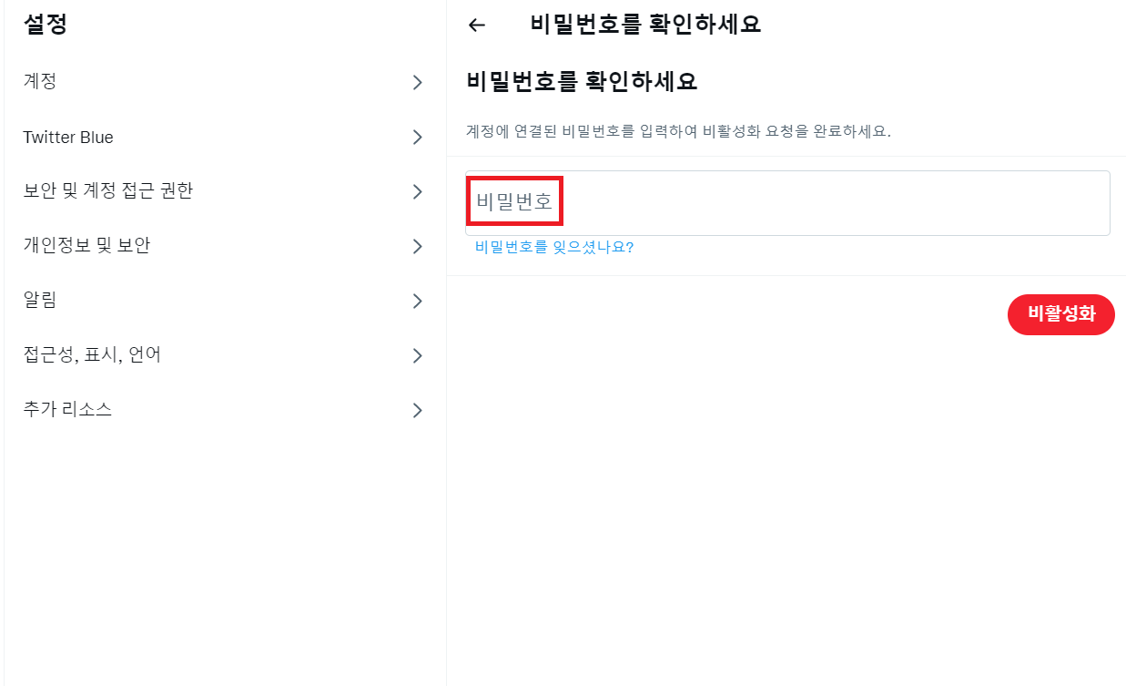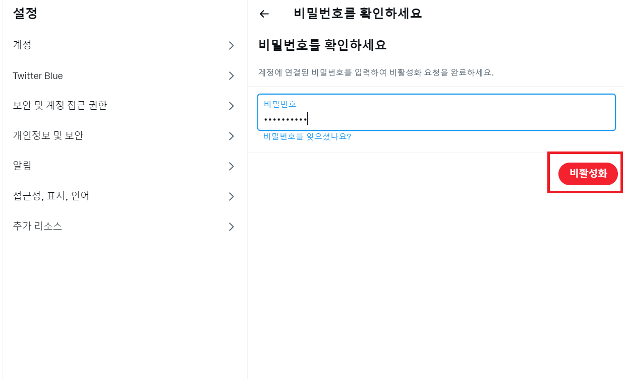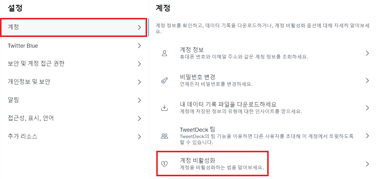 트위터 계정 비활성화 방법 - PC