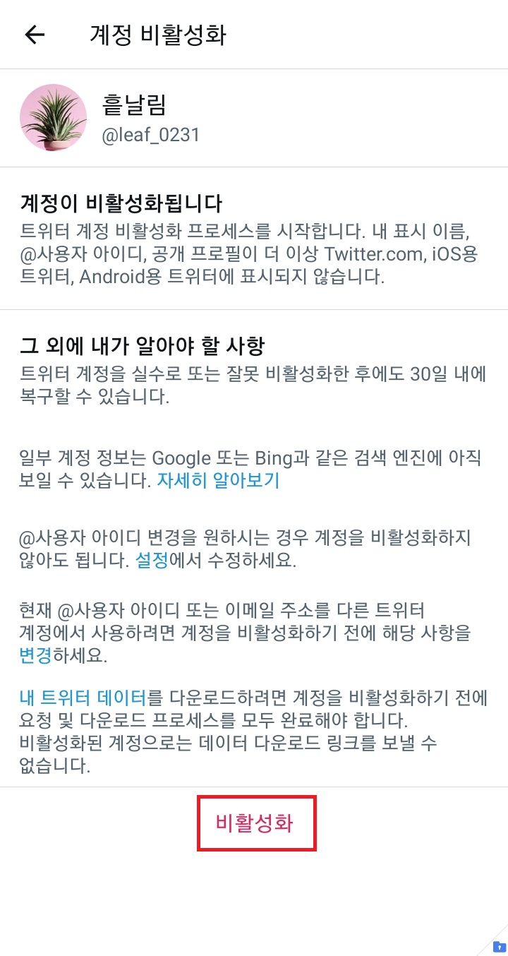 트위터 계정 비활성화 방법 - 모바일