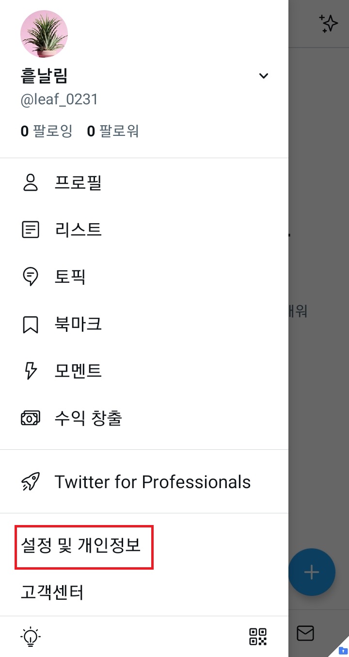 ✓ 본인의 프로필을 누르게 되면, 위처럼 본인의 프로필과 관련된 여러 가지 메뉴들이 나오게 되는데요, 여기서 아래에 보이시는 설정 및 개인정보를 눌러 들어가 줍니다.
