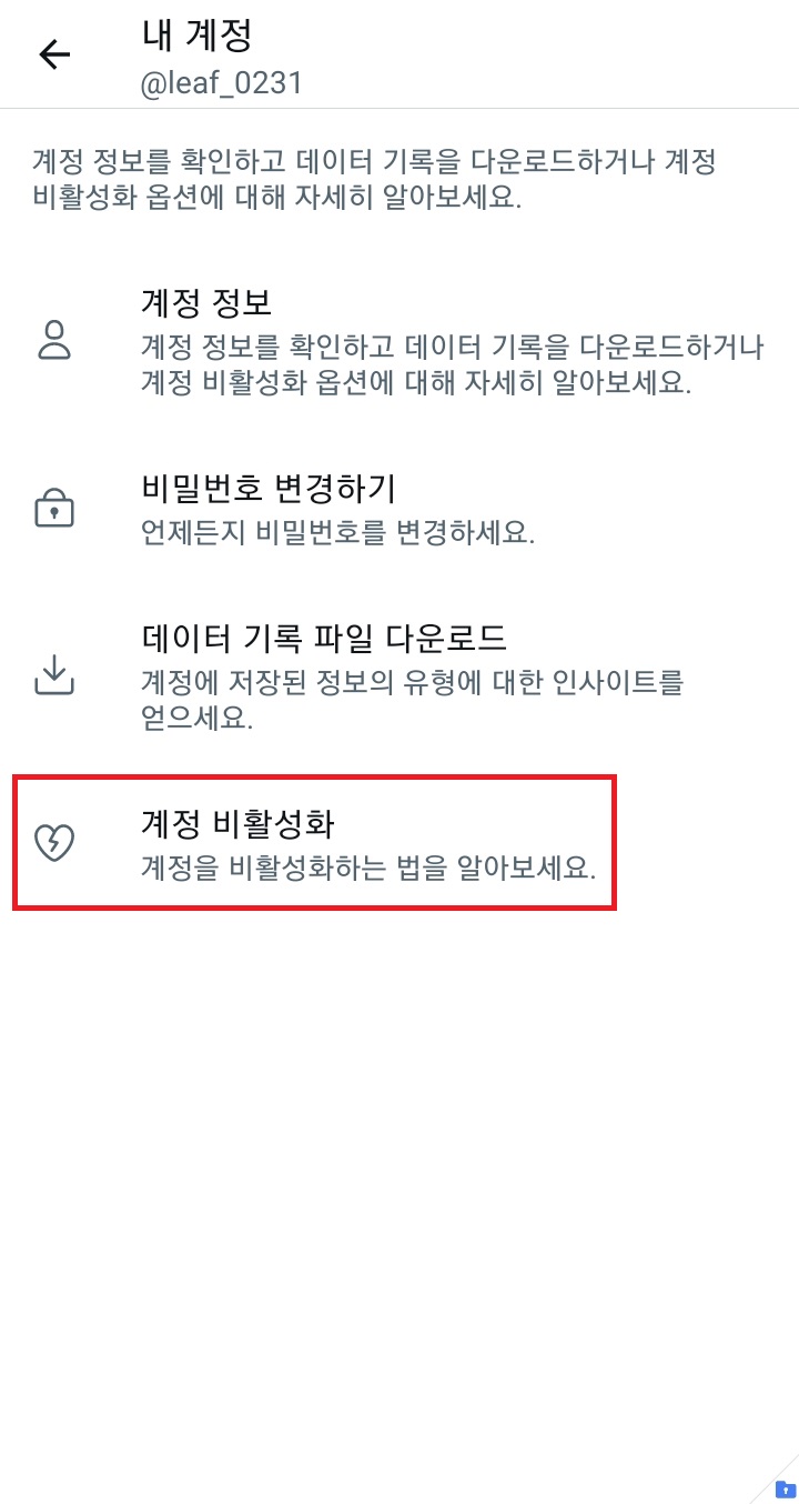 트위터 계정 비활성화 방법 - 모바일