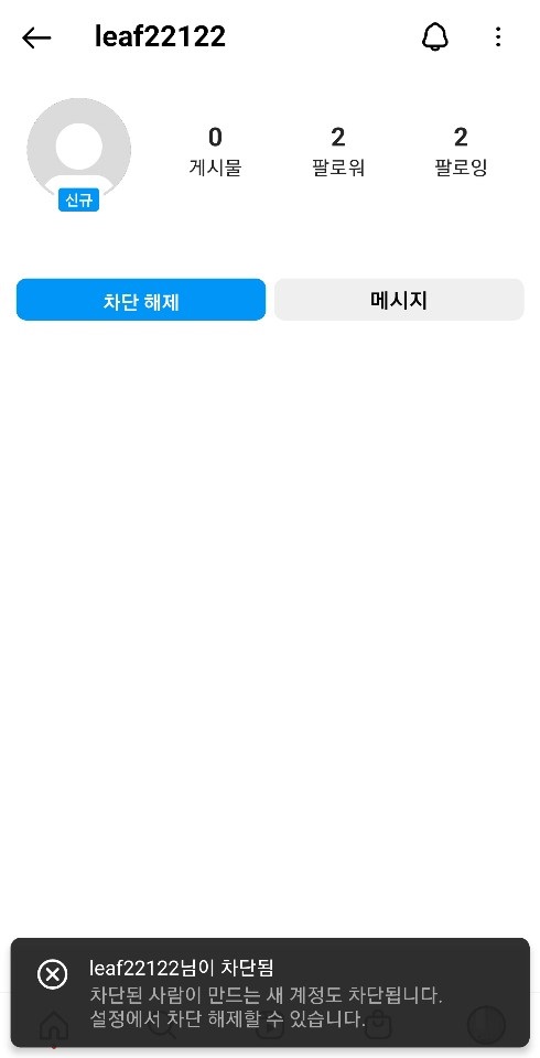 ✓ 차단을 눌러주시게 되면, 위와 같이 상대방의 게시물이 보이지 않고, 상대방에게도 내 게시물이 보이지 않게 됩니다.